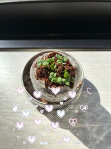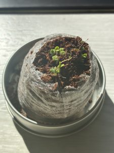 気分も上がってきたところで、以前景品でもらったハーブ栽培キットでハーブの種を蒔くことにしました。実は昨年、ある植物園で同じようなキットを買って失敗したのですが、今回ただでもらったものを使ってダメ元で再挑戦しました。前回は水やりを忘れて土が乾燥したのが失敗の原因だと思っています。今回は家にいるしかないので、忘れることもなく、無事発芽しました。もう少ししたら、間引きしなければなりませんが、ニョキっと出てきた芽がかわいくてたまりません。スイートバジルやレモンバームの葉を収穫できるまで成長して欲しいものです。